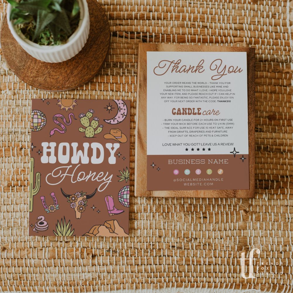 Candle Care Card and Business Thank You Canva Template | Western Desert | Nash